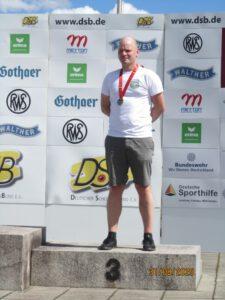 Mit der 25m Zentralfeuerpistole belegte die 1. Mannschaft aus Freiendiez den Silbernen Treppchenplatz mit dem bewährten Team Patrick Meyer, Torben Engel und Pierre Michel. Bei den Herren I belegte Patrick Meyer Platz 9 mit 563 Ringen; Philipp Sersch mit 546 Ringen Platz 20 und Stefan Decker Platz 25 mit 543 Ringen. Die 2. Mannschaft aus Diez belegte Platz 11 mit Stefan Decker, Philipp Sersch und Ingo Rutz. Torben Engel (Herren II) wurde Vize-Deutscher Meister mit 565 Ringen. Pierre Michel verpasste knapp die Medaillenränge und kam mit 556 Ringen auf Platz 4. Ingo Rutz (529 Ringe) belegte Platz 28 bei den Herren III. Bei den Herren IV belegte Thomas Kindler (SSV Netzbach) Platz 35.